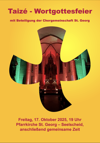 Im Oktober 2025 beginnen wir gemeinsam mit der Chorgemeinschaft St. Georg ein neues Gottesdienstformat, ein meditatives Abendgebet mit Gesängen aus Taizé.