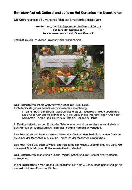 Am Sonntag, den 26. Oktober 2025 um 11.00 Uhr feiert der katholische Pfarrverband Neunkirchen-Seelscheid die diesjährige Messe mit Krankensalbung in der Pfarrkirche St. Margareta.
