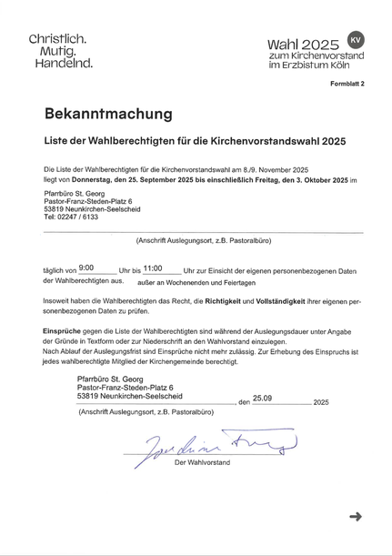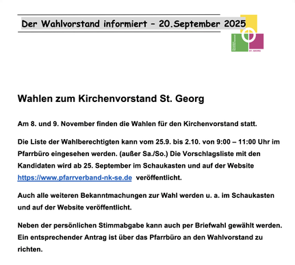 Sehr geehrte Gemeindemitglieder der Pfarrgemeinde St. Georg,