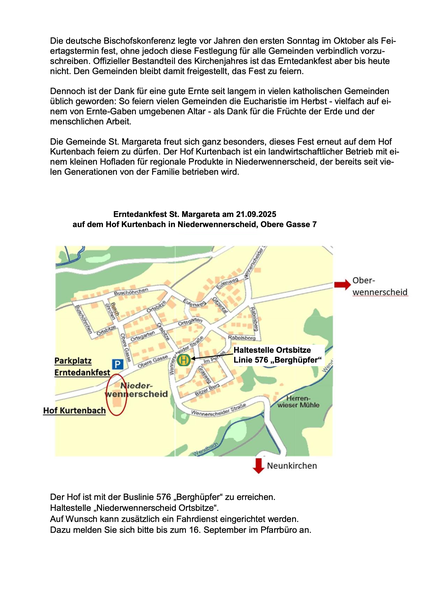 Die Einführung findet statt im Rahmen einer Heiligen Messe am Sonntag, 28. September 2025 um 14 Uhr in der Pfarrkirche St. Margareta – Neunkirchen. Anschließend laden wir zu einem gemütlichen Beisammensein im Umfeld der Kirche.